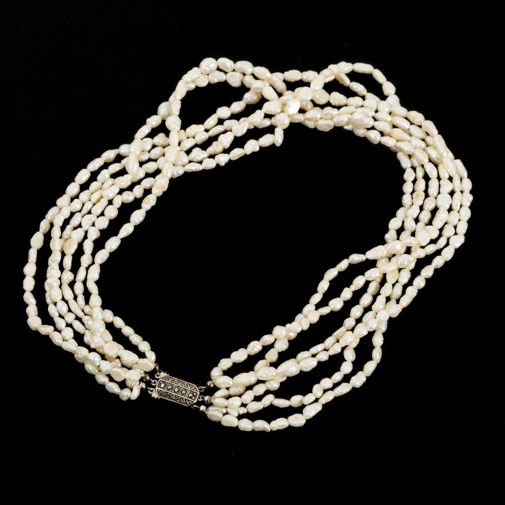 6-reihige Perlenkette mit Zierschließe.