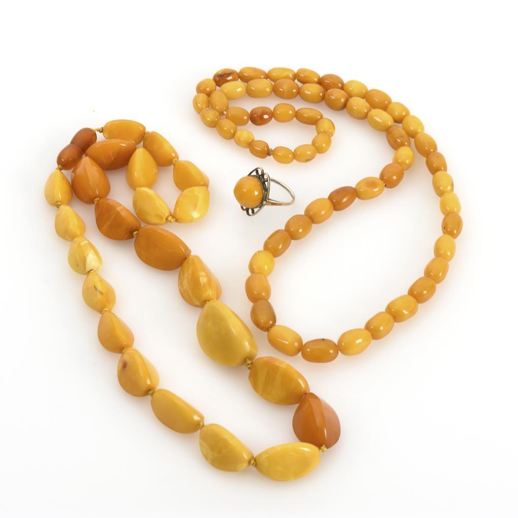 2 Bernsteinketten und Ring.