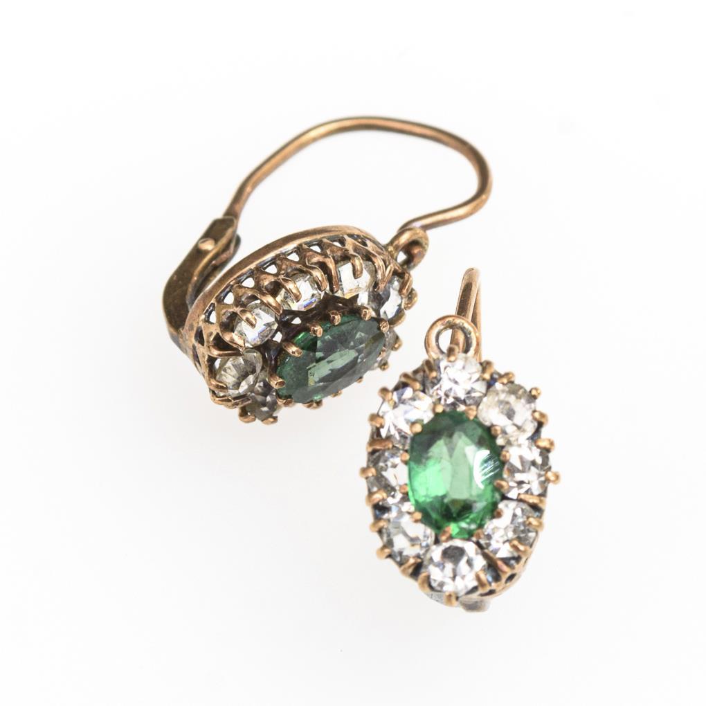 You are here: Home Categories Jewelry Kleines Ohrhängerpaar mit grünen und farblosen Steinen