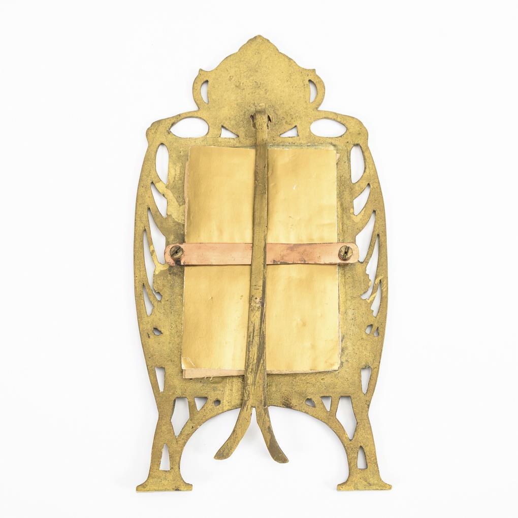 Kupfer und Messing, innen verzinnt bzw. Bronze und Glas. H 31,5 cm bzw. 28 x 15 cm, Bildmaß 11,5 x 8 cm.