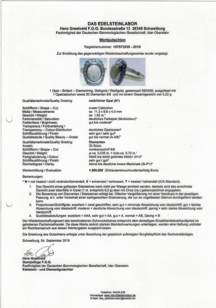 Ring mit Opal und Diamanten.