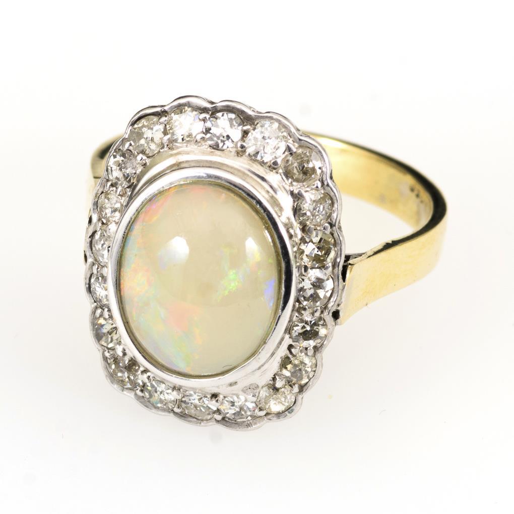 Gelbgold/Weißgold 585 gestempelt. Opal ca. 1,92 ct, Diamanten zus. ca. 0,70 ct/H-J/si-PI, Ringgröße 58. 5,2 g.