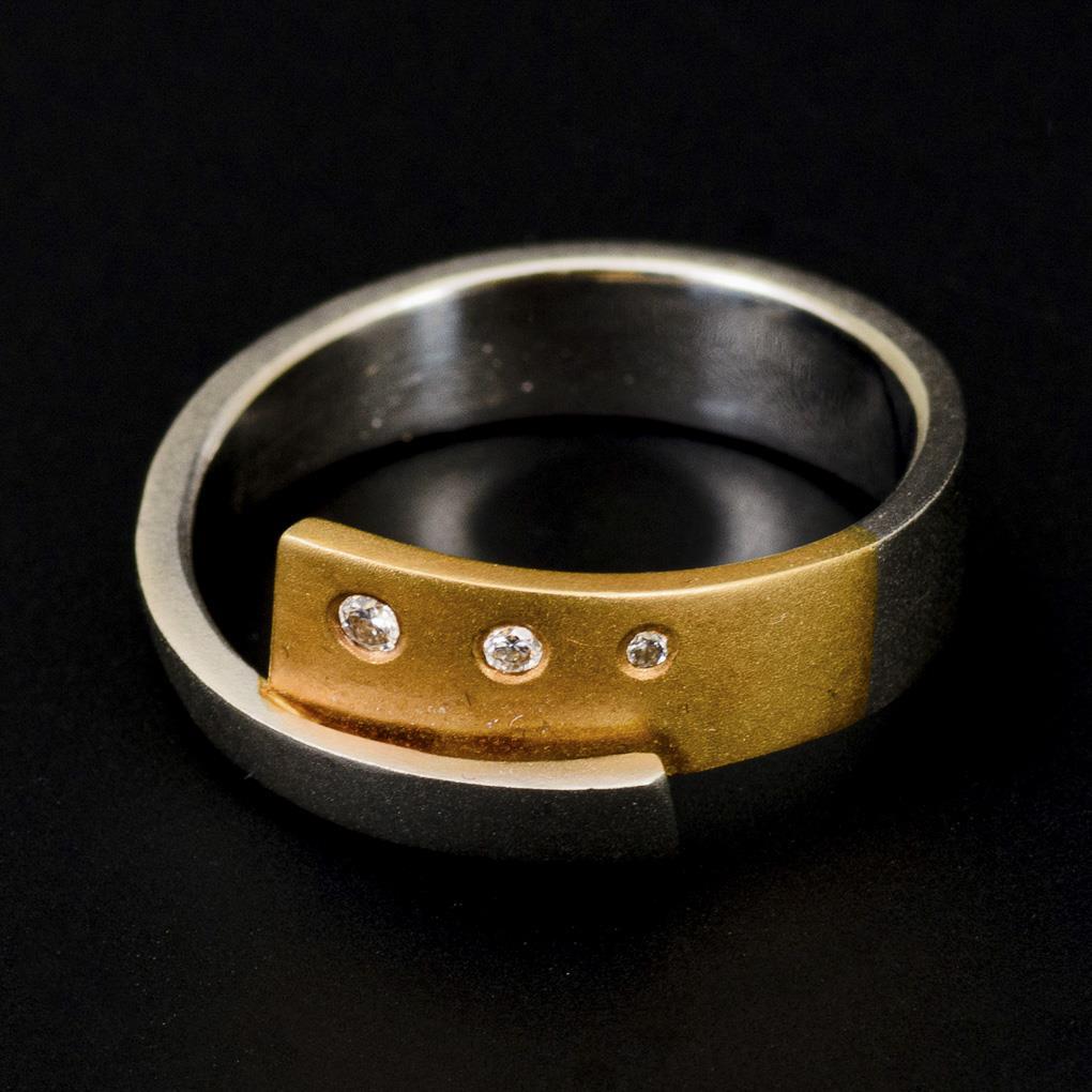 Breiter Bandring mit 3 kleinen, eingelassenen Steinen.
