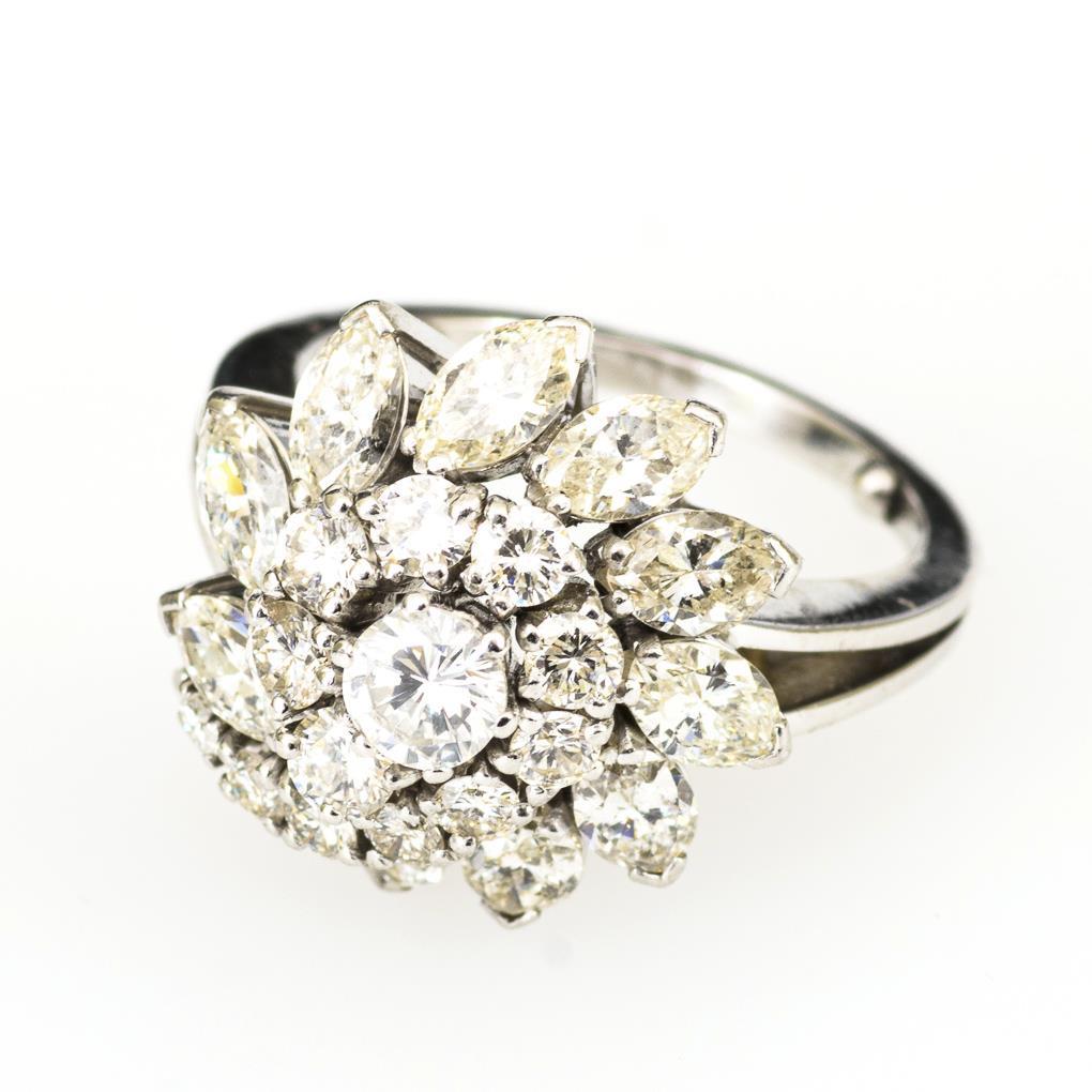 Weißgold 750 geprüft. Brillanten zus. ca. 1,41 ct, Diamanten zus. ca. 2,30 ct/G-H/vs-si. Ringgröße 47. 10,48 g.