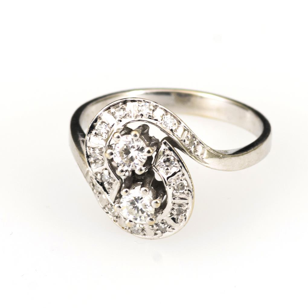 Weißgold 585 gestempelt. Brillanten zus. ca. 0,46 ct. Ringgröße 56. 3,8 g.