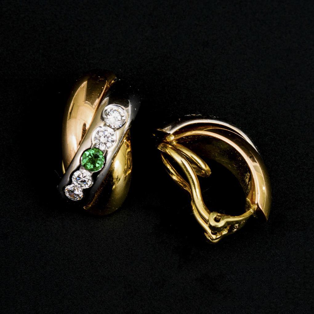 Ohrklipp-Paar mit Smaragden und Brillanten.