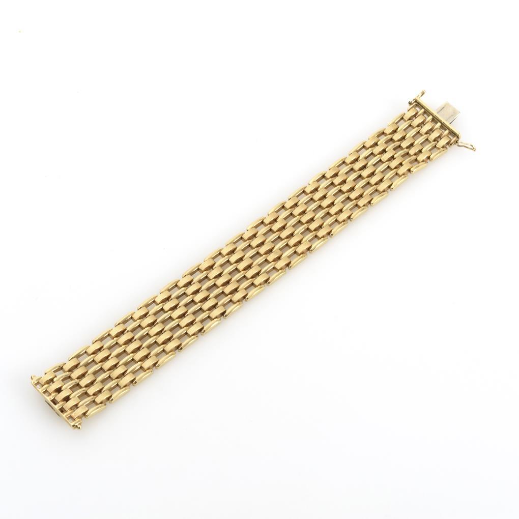 Breites Gliederband mit teils satinierten Gliedern, an Kastenschloss mit 2 Achtersicherungen.