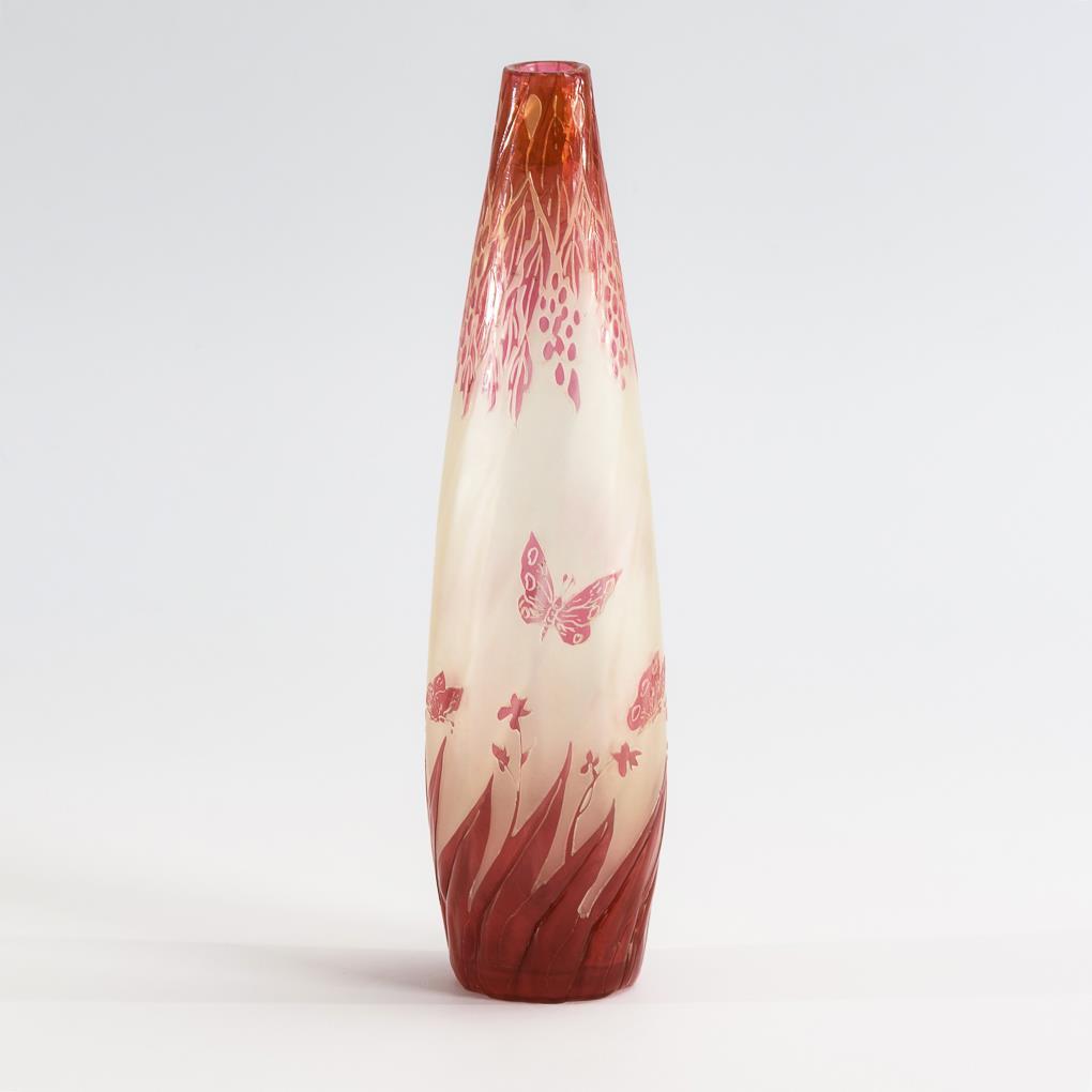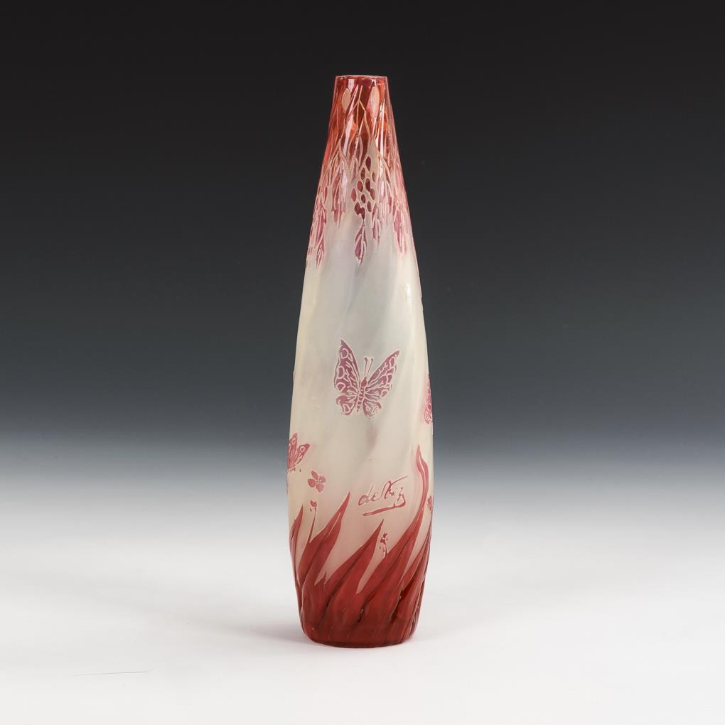 Jugendstil-Vase mit Schmetterlingsdekor. De Vez.