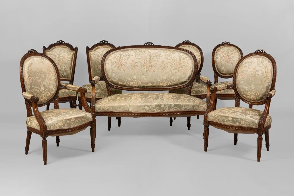 7-teilige Salongarnitur im Louis-XVI.-Stil