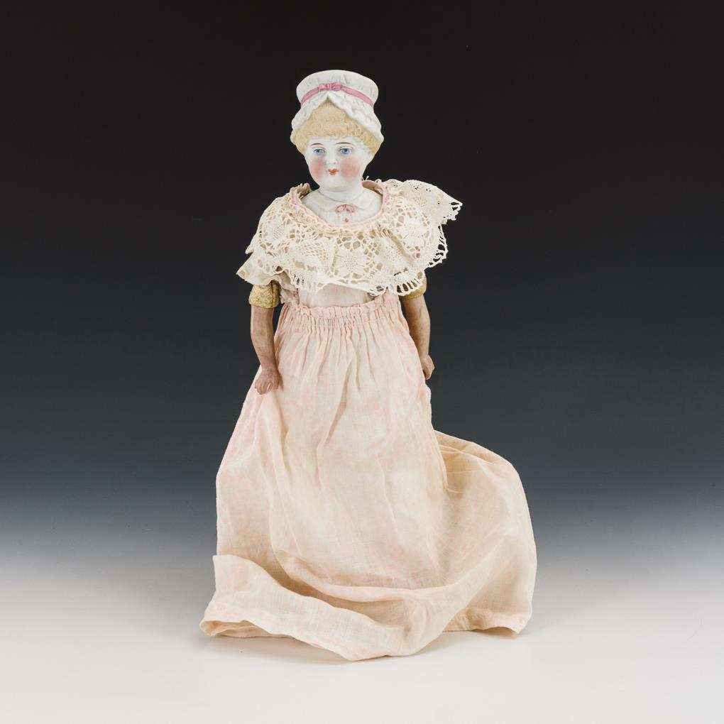 Puppendame mit modelliertem Brustkopf. Wohl Kling.
