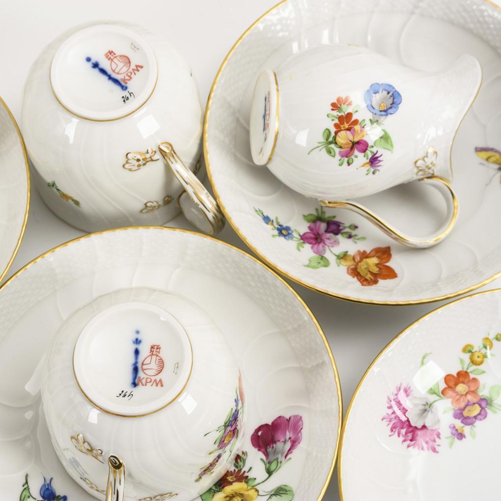 Kaffeeservice mit Blumenmalerei. KPM Berlin.