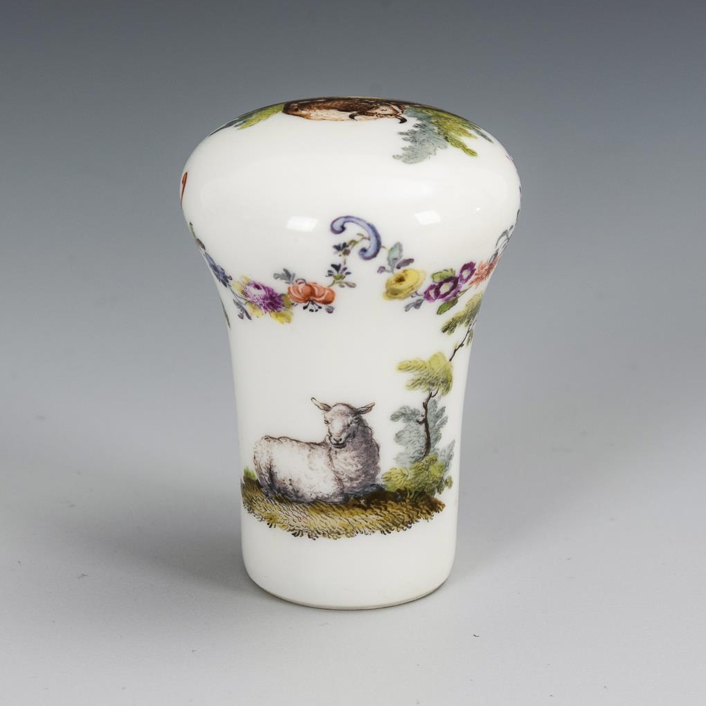 Stockknauf mit Tiermalerei. Meissen.