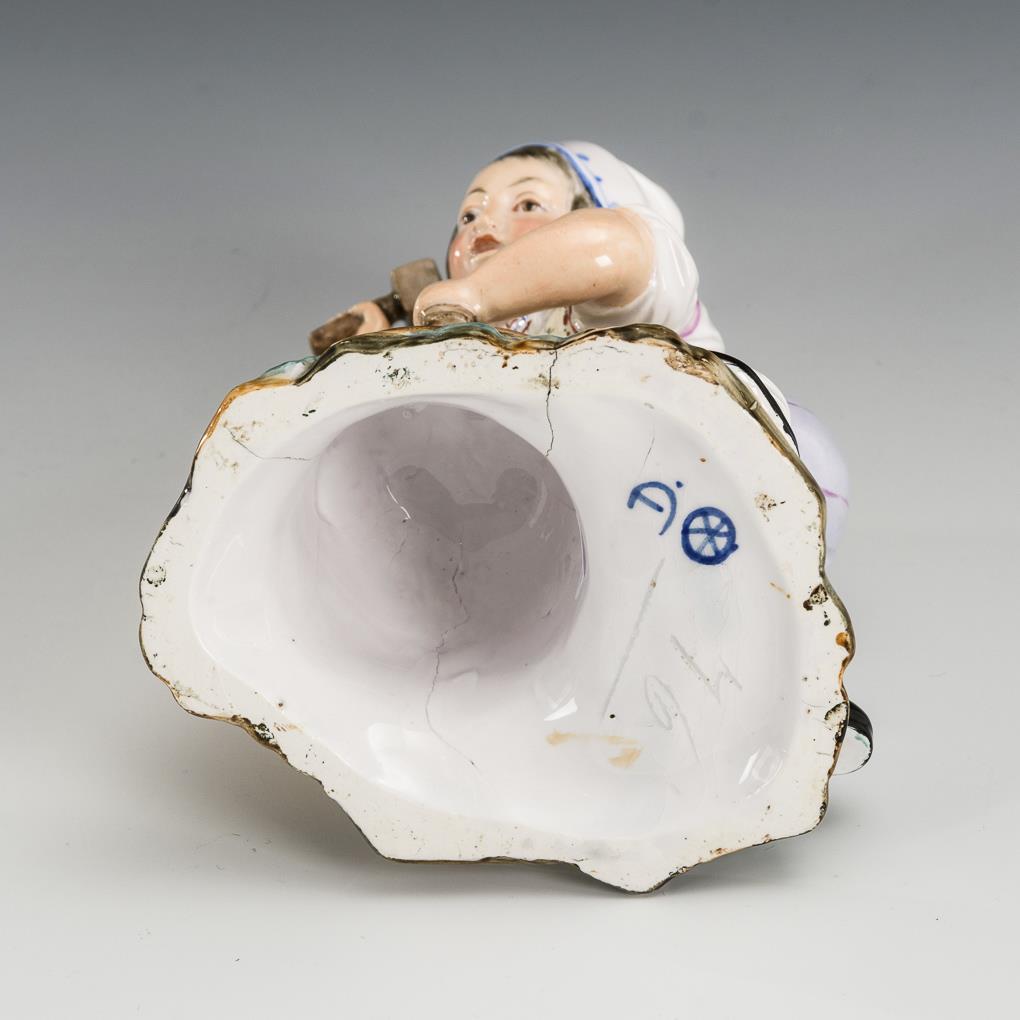 Blaue Radmarke "D.". Ritznummer "76". Figurenmodell: Manufaktur Höchst, Johann Peter Melchior, um 1775. Ausformung: Steingutfabrik Damm, um 1850/60.