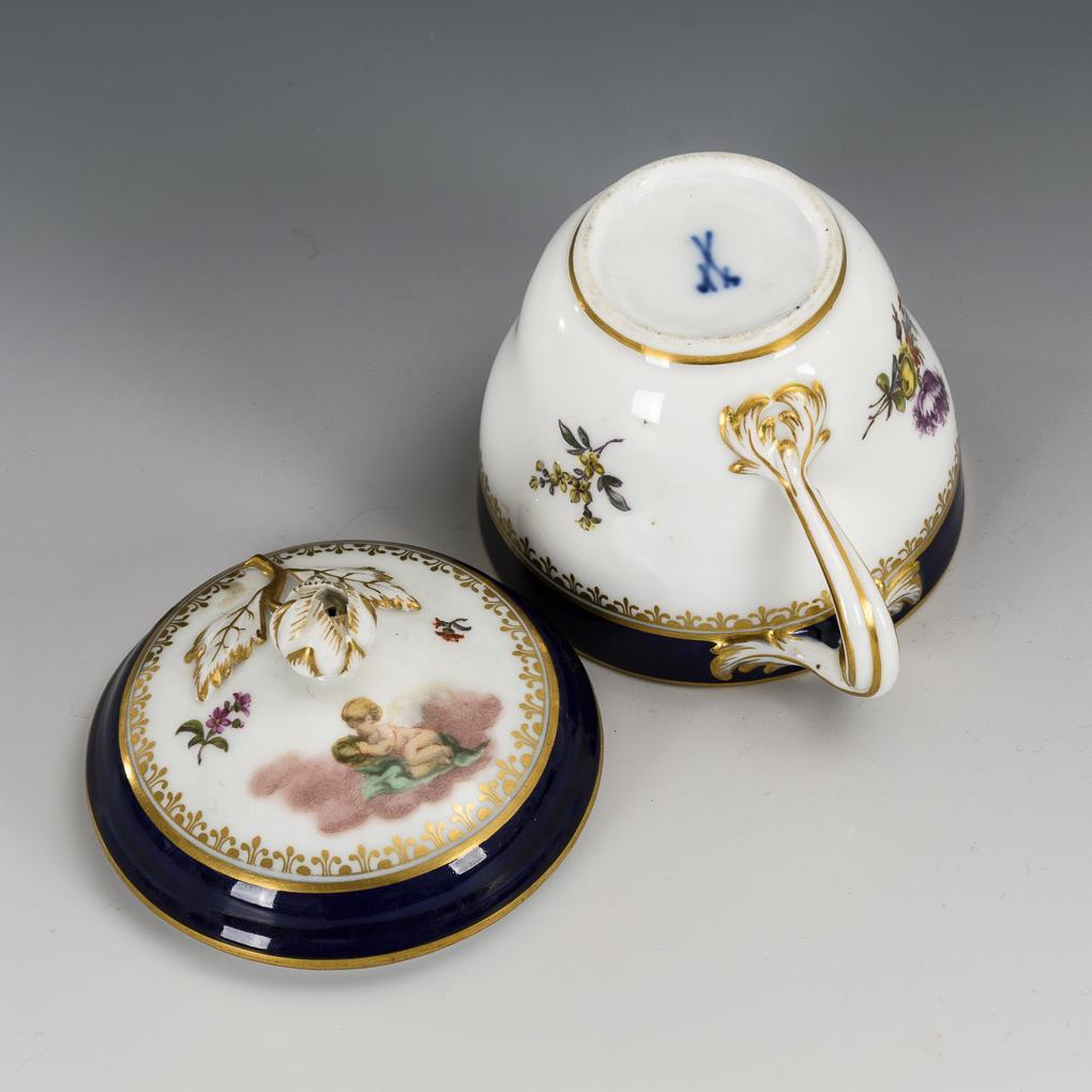 Deckeltasse mit Puttenmalerei. Meissen.