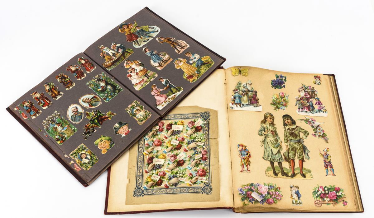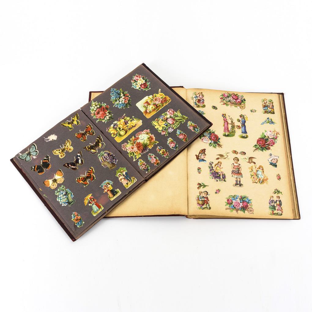 2 Sammelalben mit Glanzbildern / Oblaten / Poesiebildern.