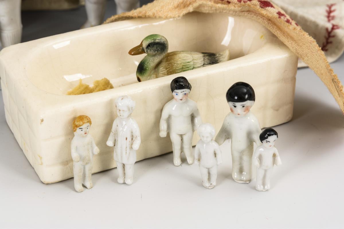 Keramikwanne und Konvolut Badepüppchen.
