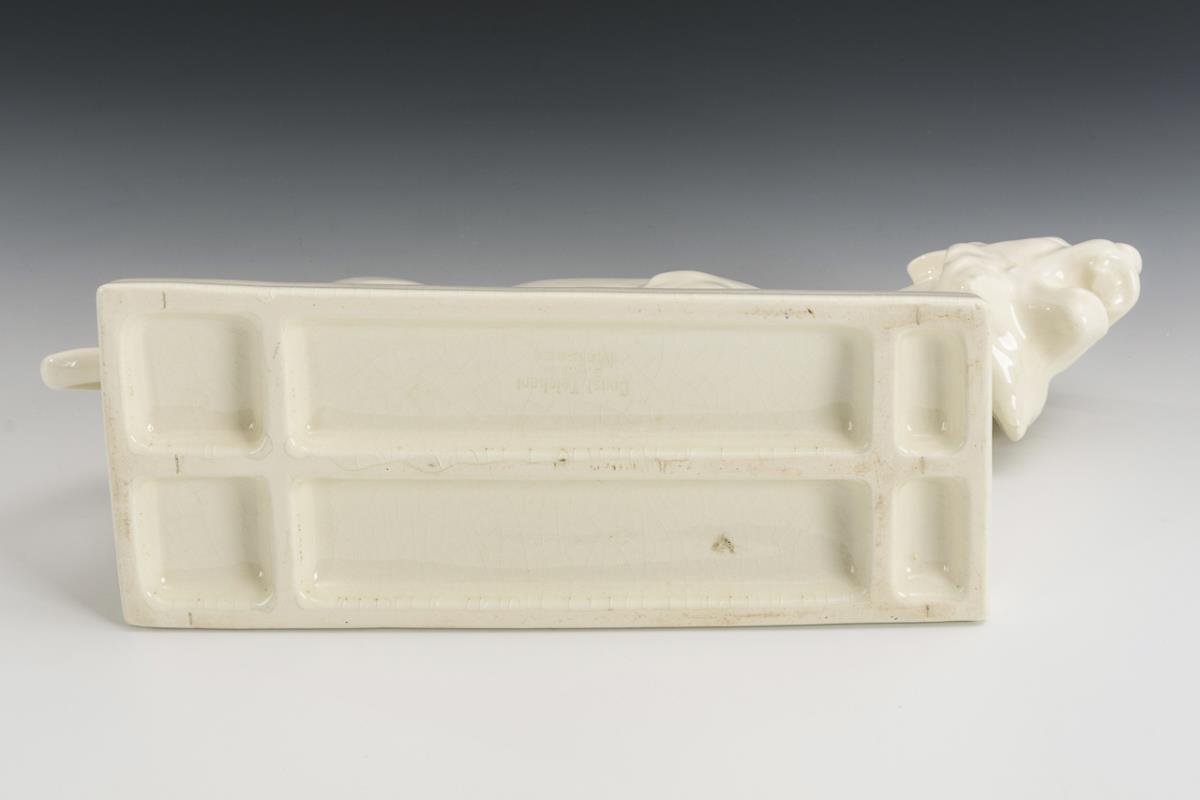 Steingut, weiß und farblos bleiglasiert. L 43,5 cm.
