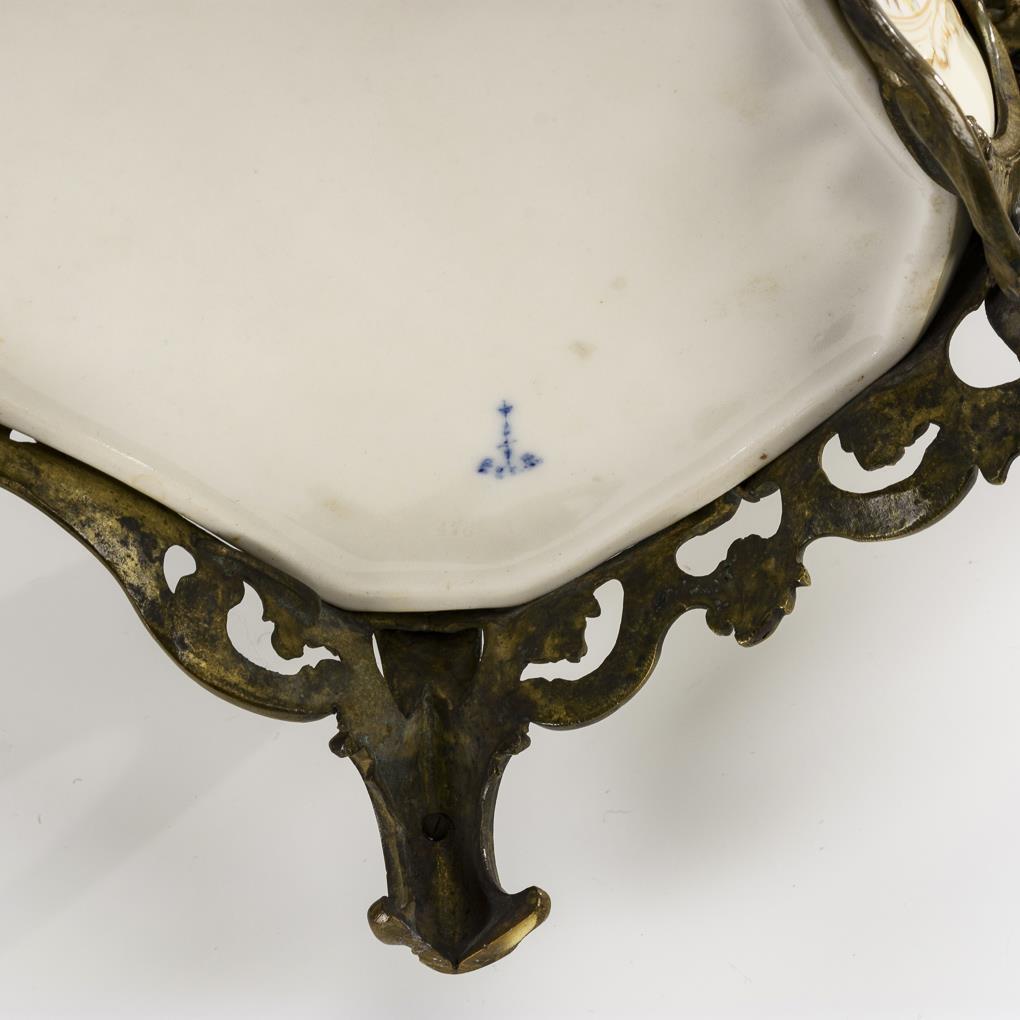Porzellan, polychrom bemalt und goldstaffiert, Bronze. 27 x 27 x 17,5 cm.
