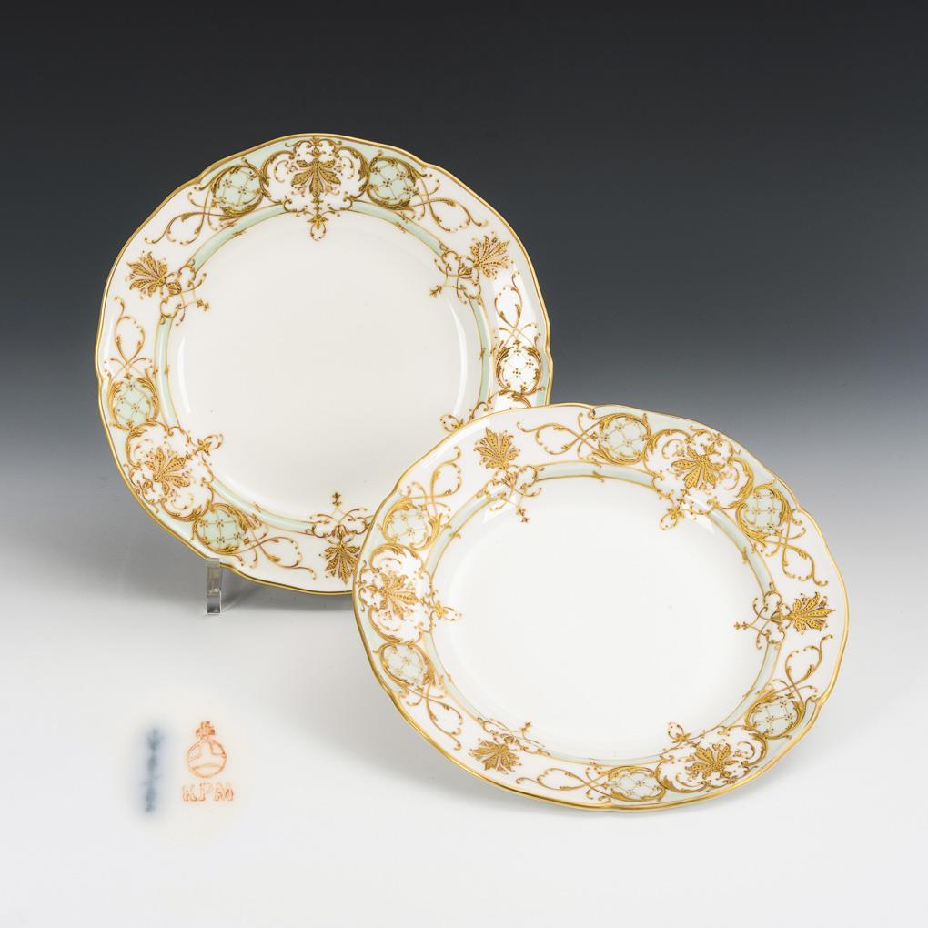 2 Teller mit Reliefgoldmalerei. KPM Berlin.