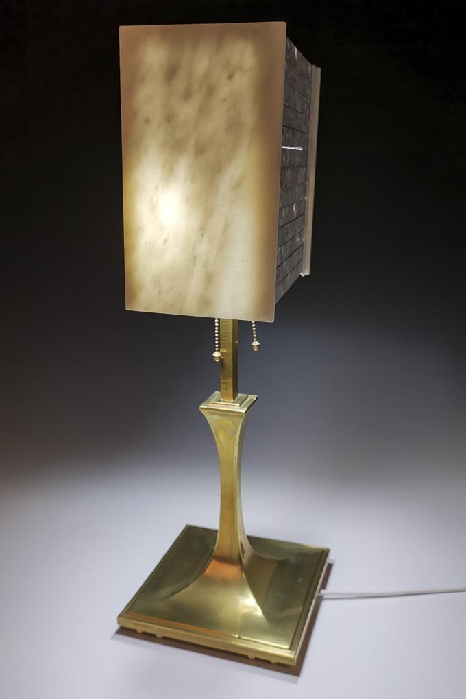Tischlampe mit Lithophanie-Schirm. Plaue.
