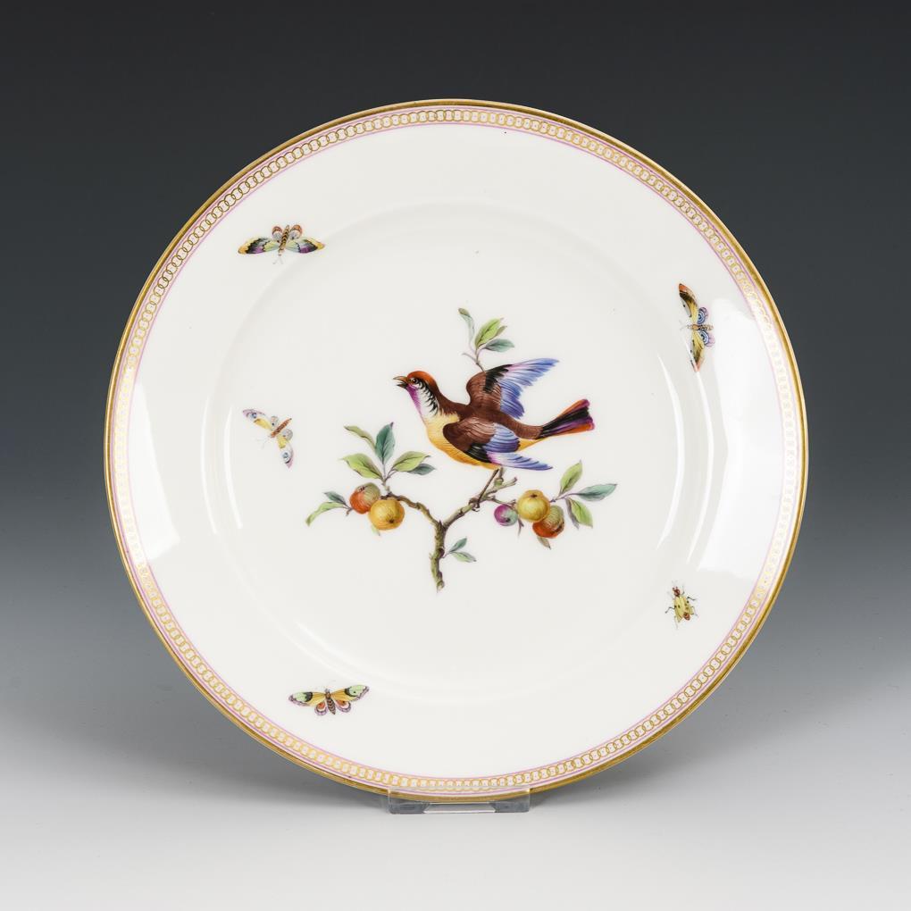 Teller mit Vogel- und Insektenmalerei. KPM Berlin.