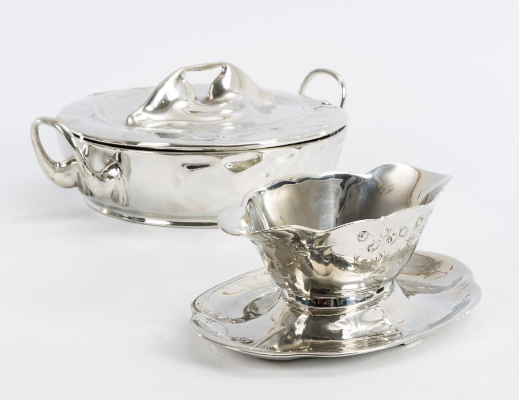 4 Teile Jugendstil-Silberzinn