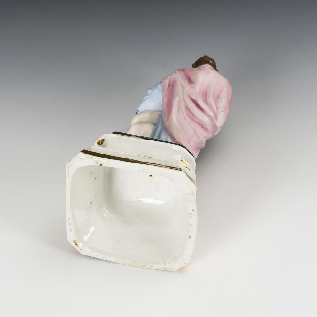 Biskuit, farb- und goldstaffiert sowie glasiert mit Goldstaffage. H 21 cm.