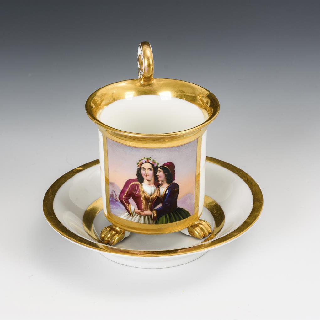 Biedermeier-Tasse mit Damendoppelporträt. Gotha.