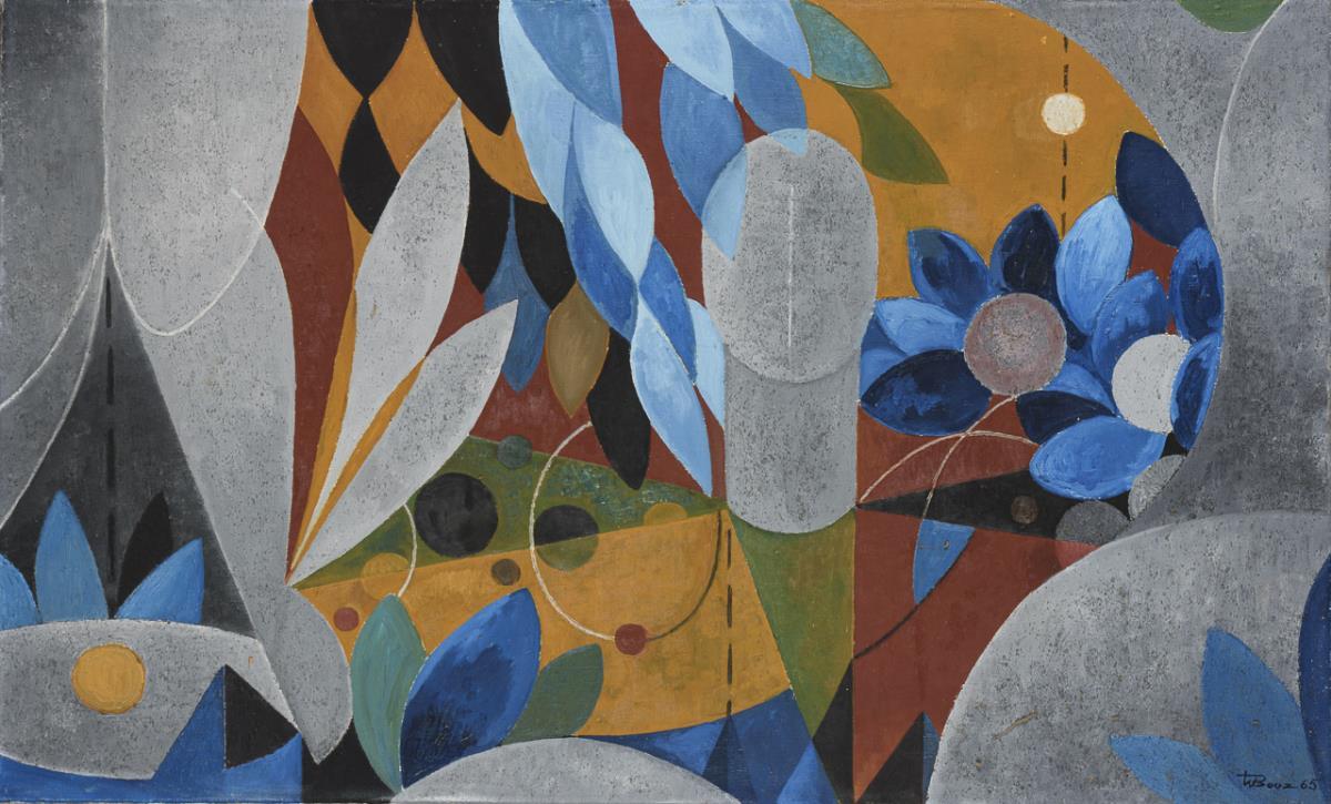 Tempera/Leinwand. Rechts unten signiert, verso bezeichnet/betitelt. Datiert: (19)65.