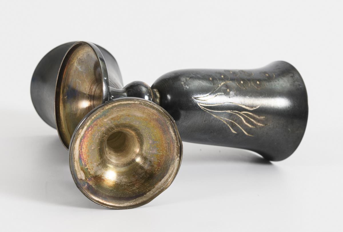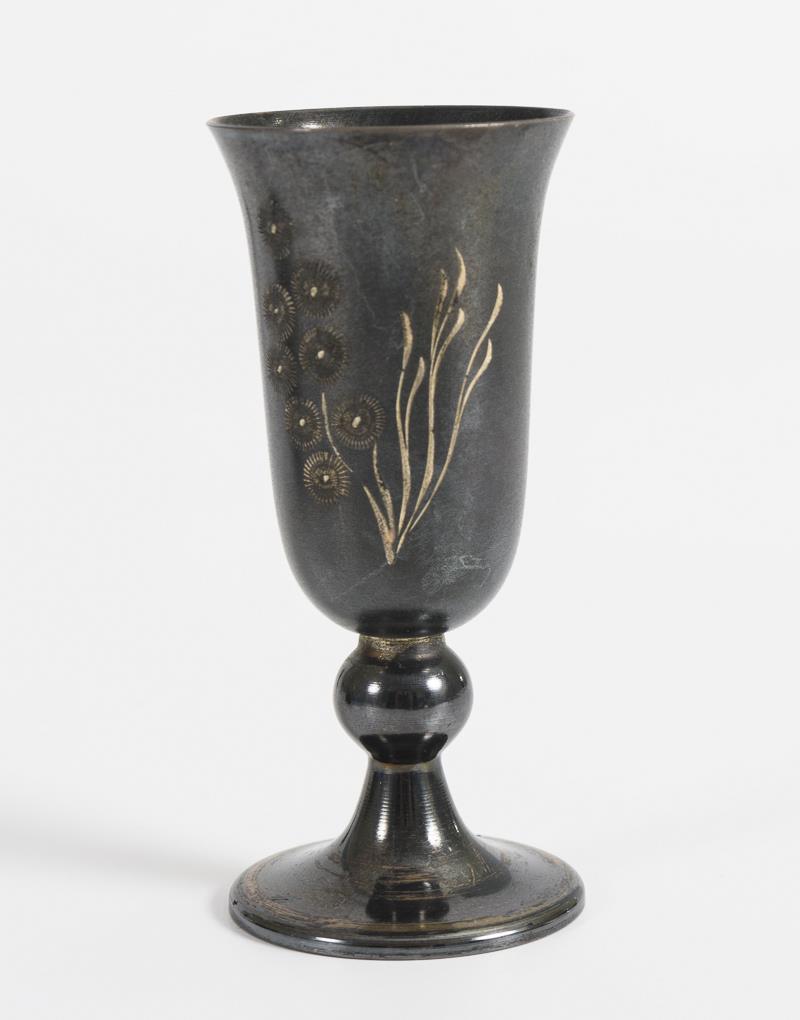 Kleine Fußbecher mit Floralgravur. Altersgeschwärzt.