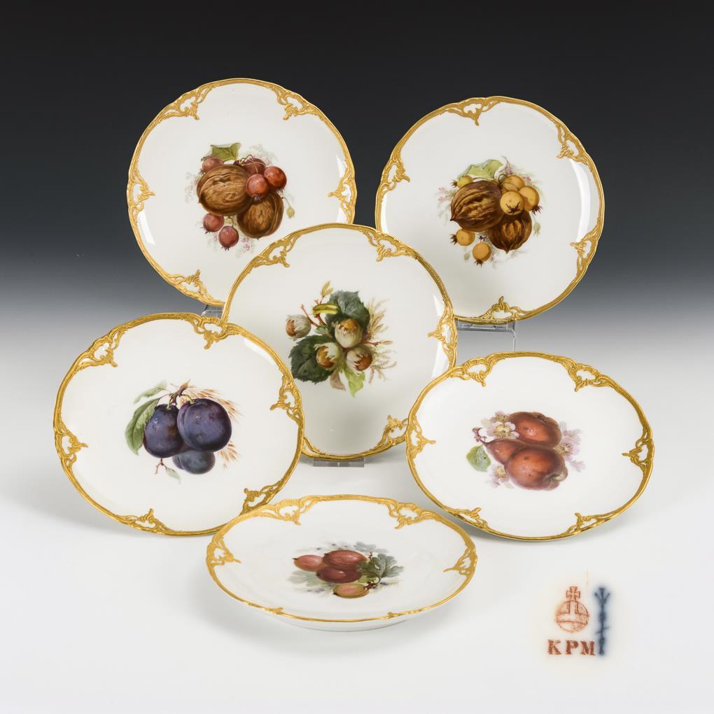 6 Teller mit Fruchtmalerei. KPM Berlin.