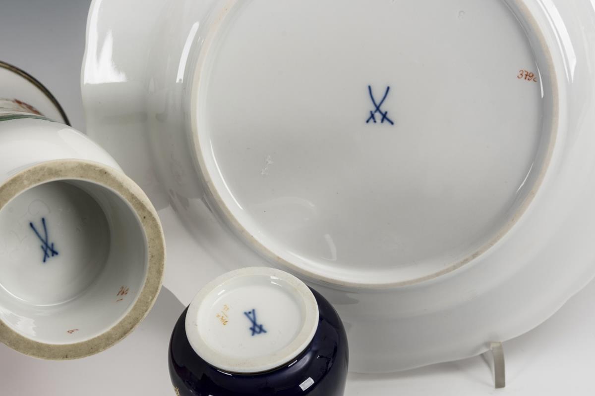 2 Vasen und 1 Teller. Meissen.