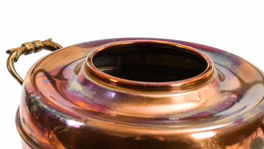 Innen verzinnt, Messinghahn, -henkel und -knauf.H 34 cm.