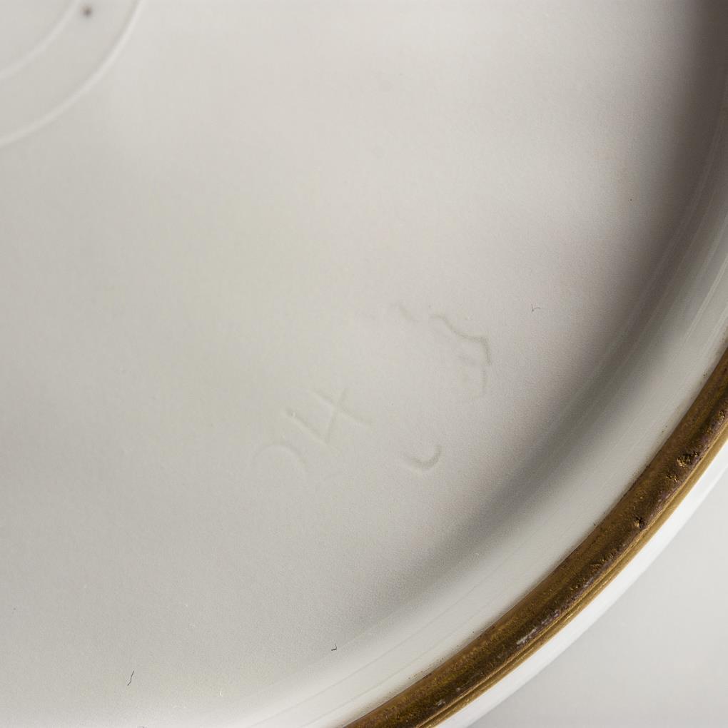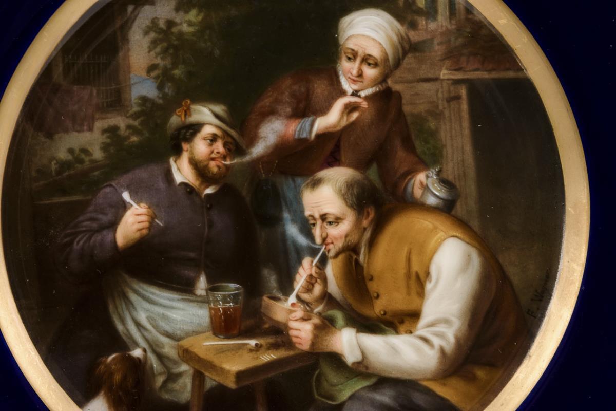 Kobaltblaue Fahne, polychrome Malerei, Goldstaffage. Ø 24 cm.
