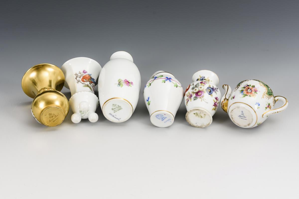 Polychrome Malerei bzw. polychromes Dekor, Goldstaffage. H 5 - 10,5 cm.