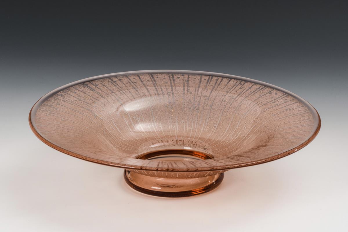Roséfarbenes, formgeblasenes Glas. Ø 29,5 cm.