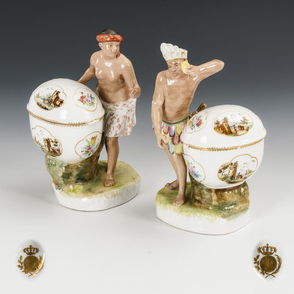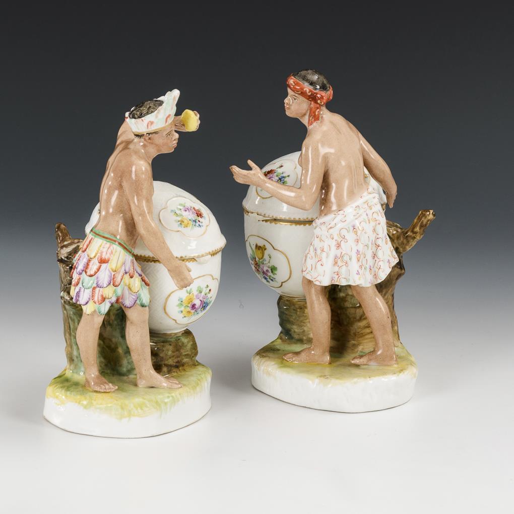 Paar Allegorien der Kontinente an Gewürzdosen.