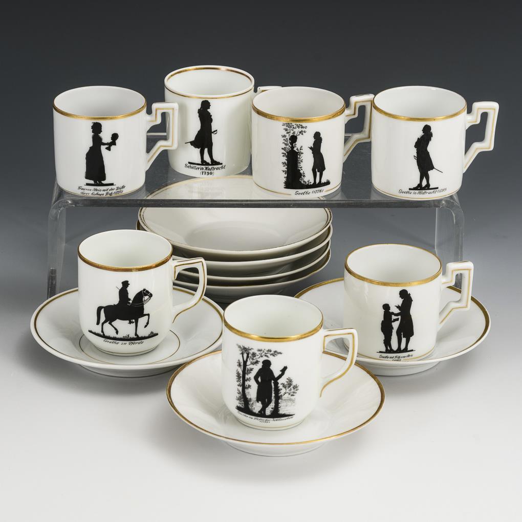 Zylindertassen mit verschiedenen Goethe-Motiven.