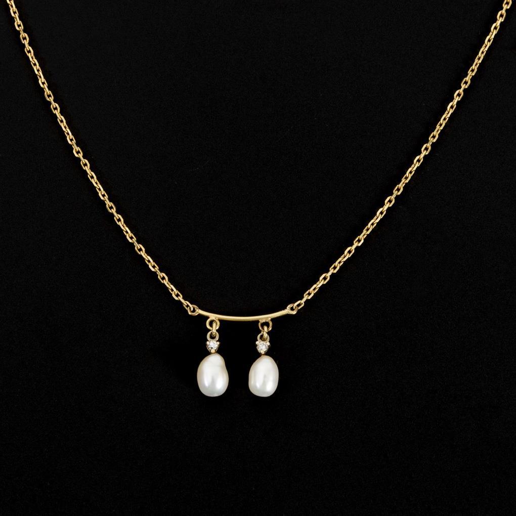 Collier mit Zuchtperlen und Diamanten.