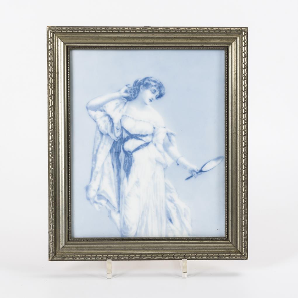 Porzellangemälde: Damenporträt mit Spiegel.
