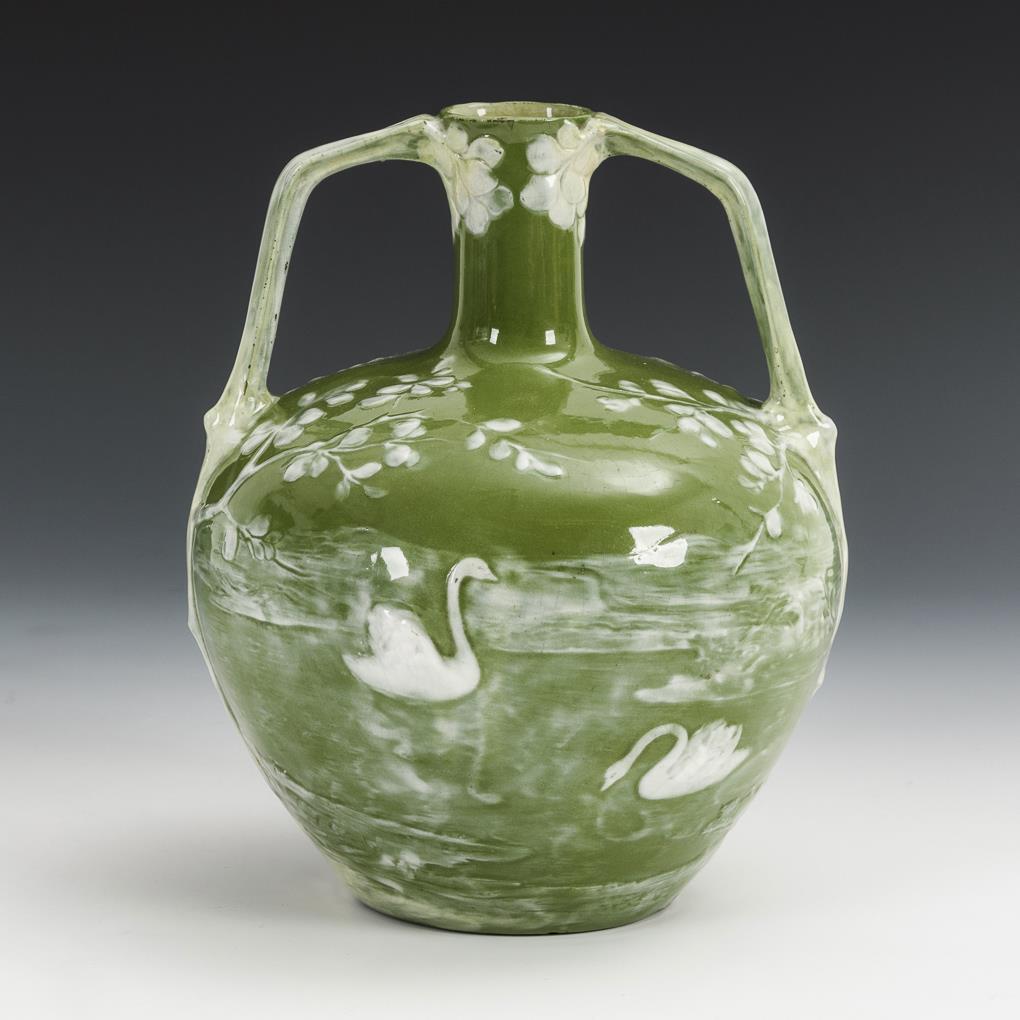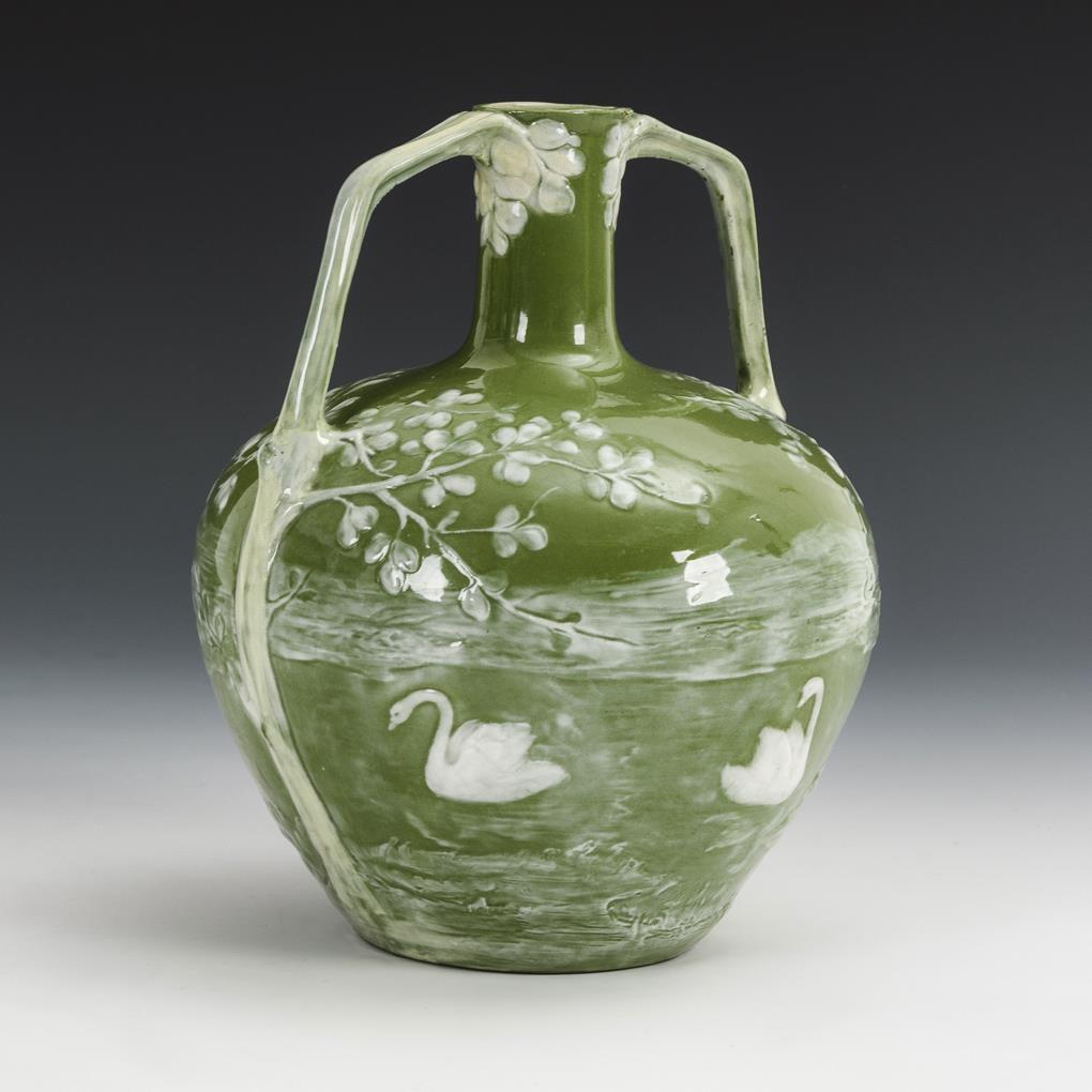 Pâte-sur-Pâte-Vase mit Schwanenmotiv.