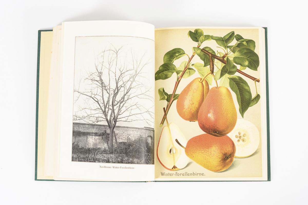 Der vollständige Birnen-Teil mit über 300 Textseiten und 84 Farblithografien sowie zahlreichen s/w Fotografien der kahlen Bäume zur Beurteilung des Baumwuchses. Grüner Leineneinband. Rücken mit Mottenfraß, sonst gute Erhaltung.