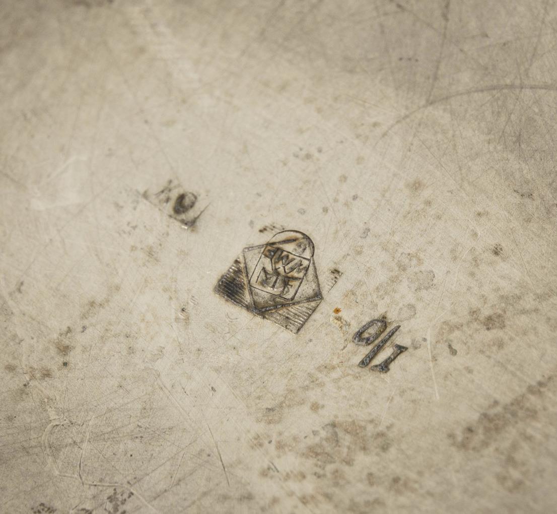 Metall, versilbert. H 19 cm, Ø 16,5 cm.