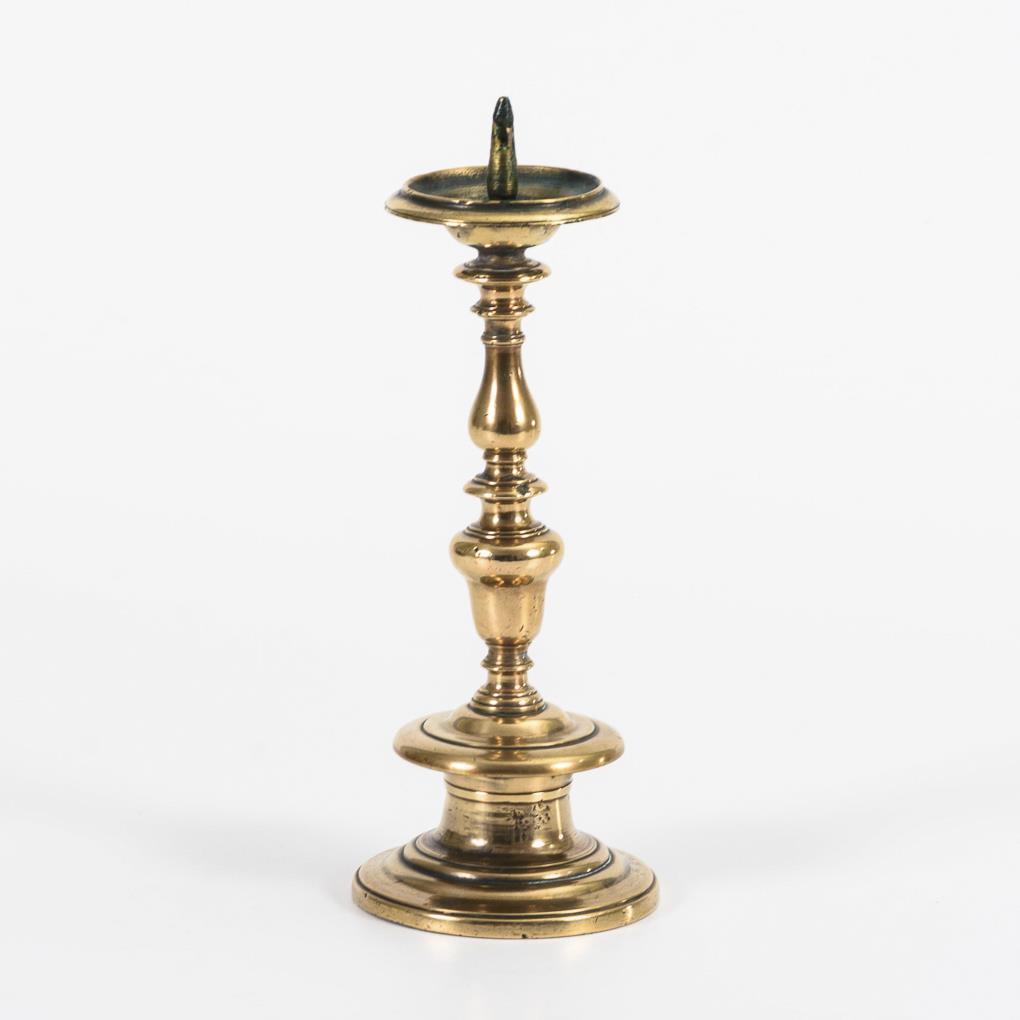 Hoher Sockel mit "Kragen", Balusterschaft, Wachsteller mit Bronze-Dorn. Einige wenige Alters-/Gebrauchsspuren.