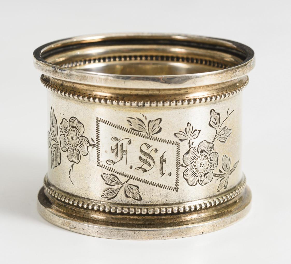 Sammlung verschiedener Serviettenringe von Gründerzeit bis Art déco. Teils mit Gravur. Einige leicht gedellt.