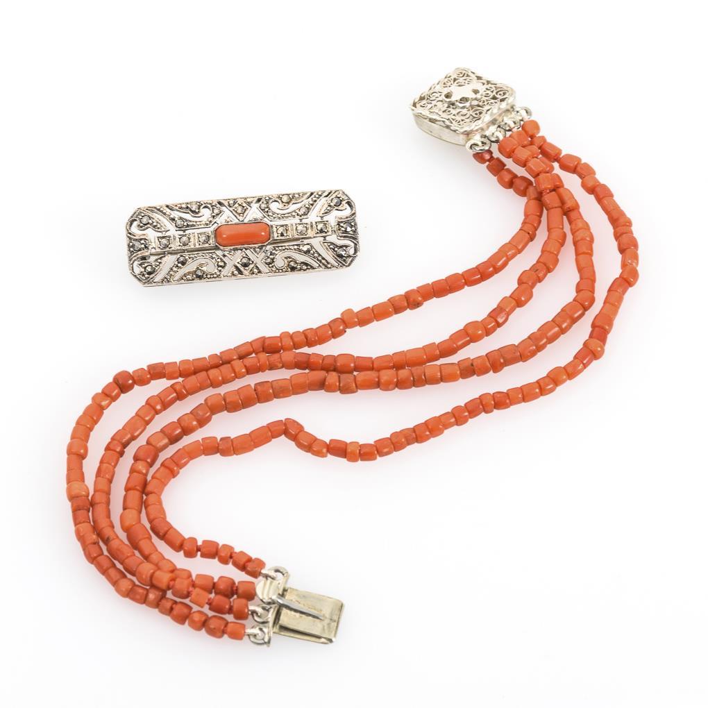 Korallenarmband und Brosche.
