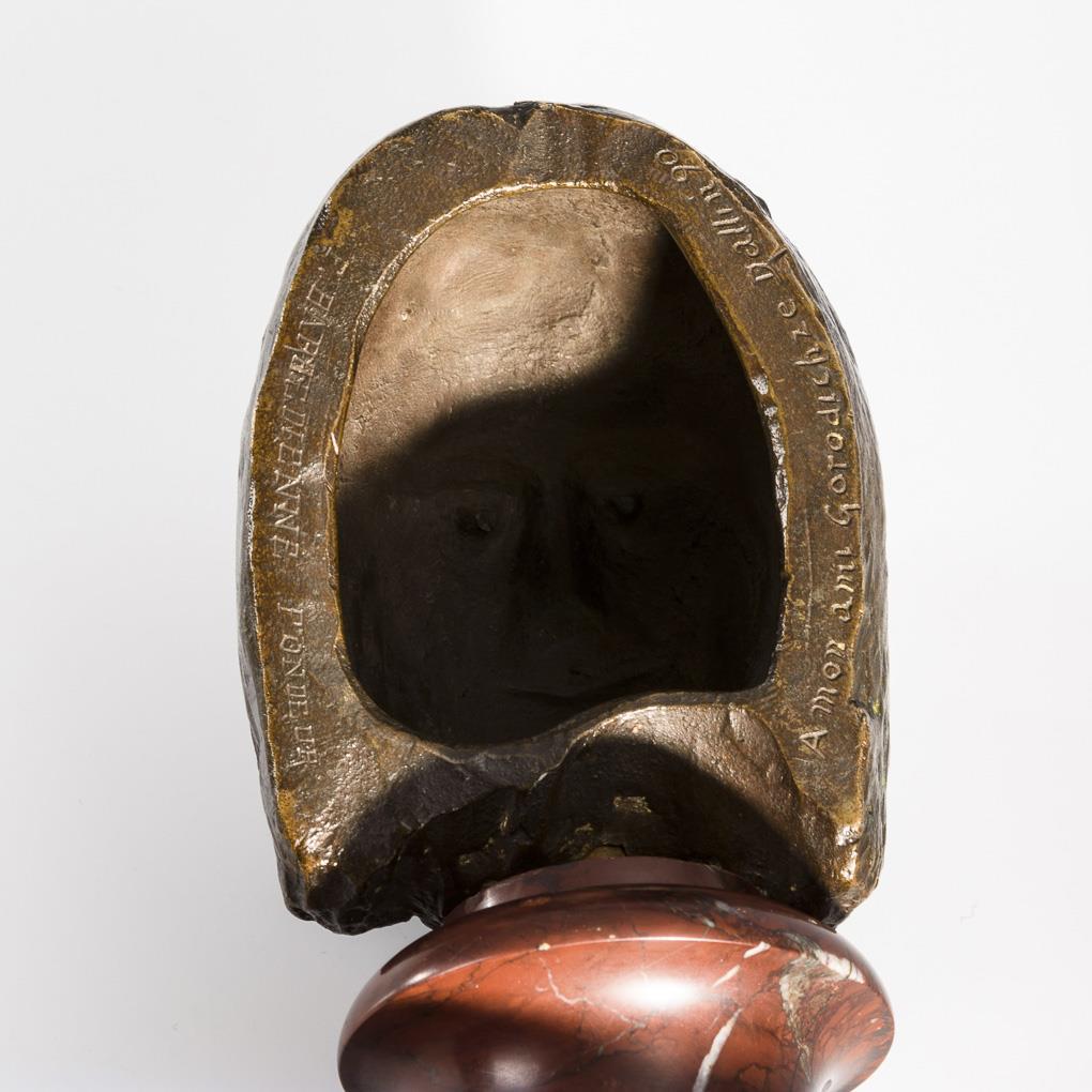 Bronze patiniert, roter Marmor-Sockel. Bezeichnet mit Zusatz "A mon ami Gorodichze" und Nr. 90 sowie Gießermarke "Barbedienne Fondeur". H 10/19 cm.