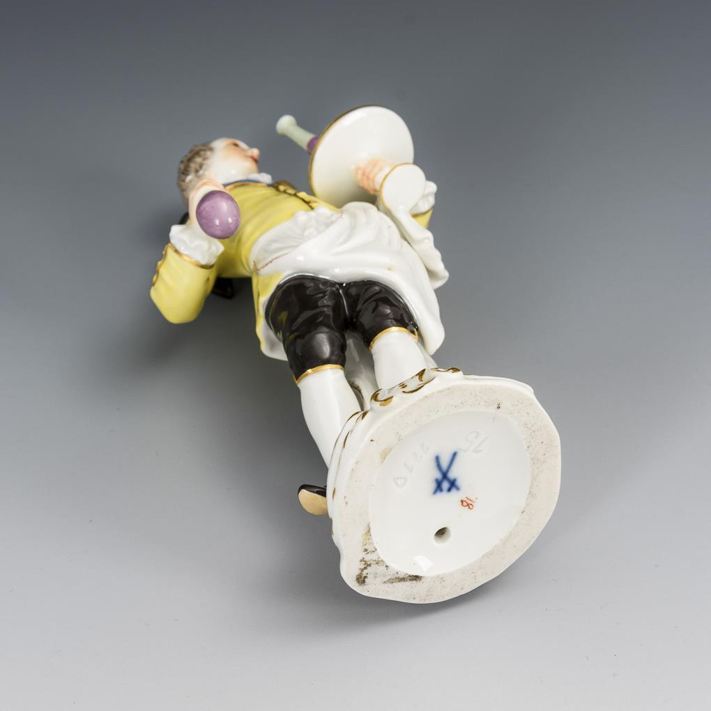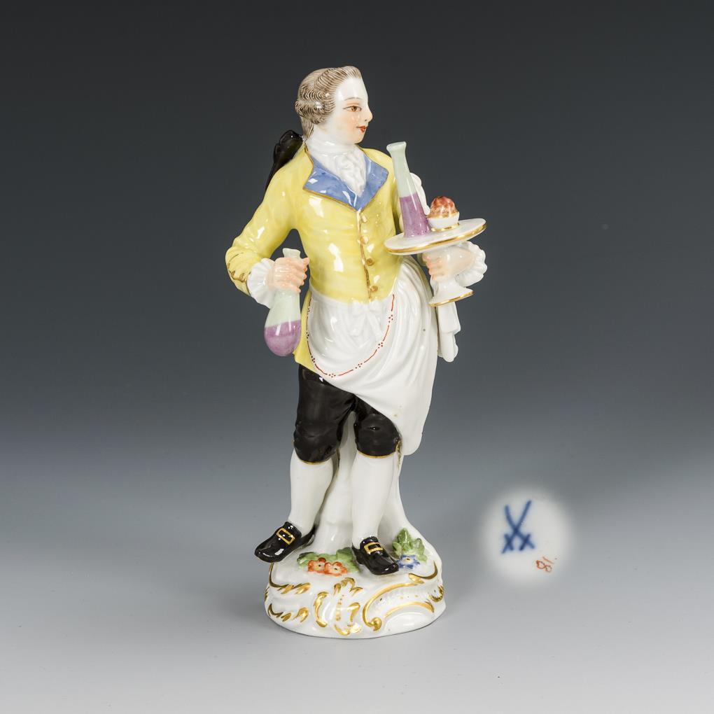 Herr mit Flaschen und Tafelaufsatz als Tablett. Haarbeutel restauriert.