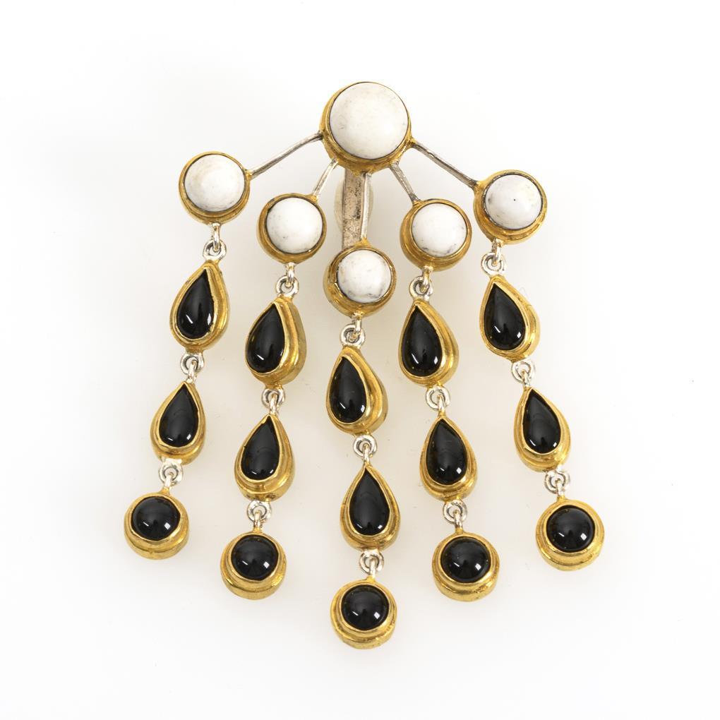 Designer-Anhänger mit weißen und schwarzen Steinen.