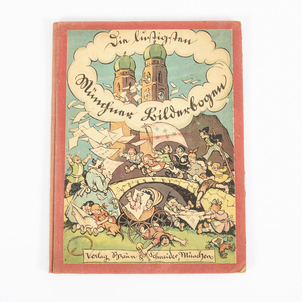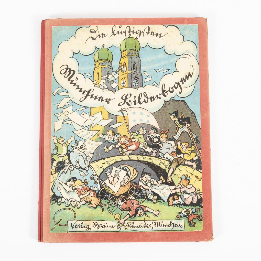 Drei Bände mit farbigen Illustrationen. / "22 nur lustige Münchener Bilderbogen", im roten Jugendstileinband.